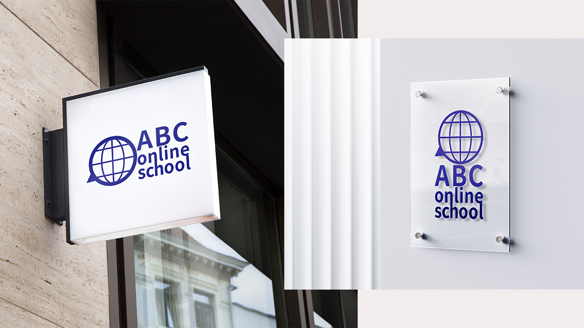 また、ABC online school の文字は縦に配しても、横に配してもバランスがとれるようにしています。 地球に吹き出しは、ABC online school で学んだ皆が、世界に向けて話しかける様子を表しています。